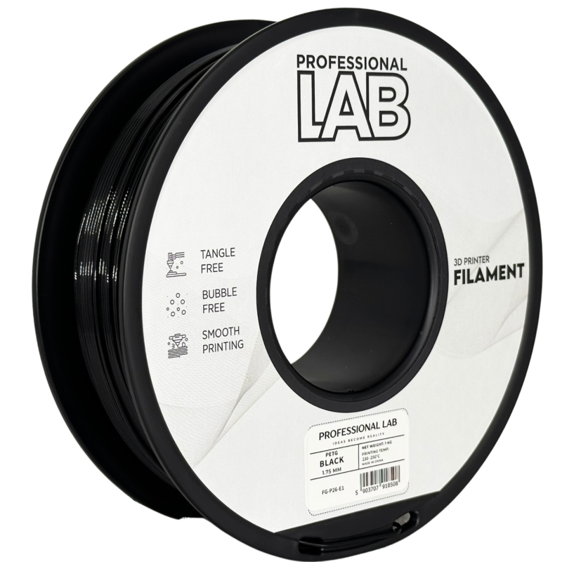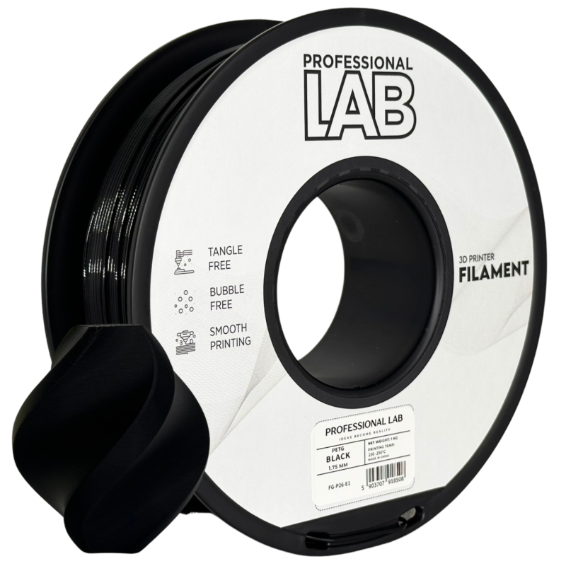 Filamento PETG com uma finura de 1,75mm e garantia de 100% sem bolhas na cor preto.