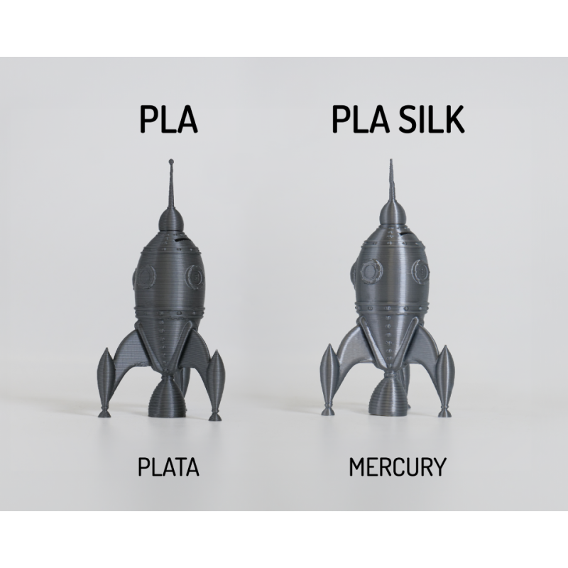 Filamento PLA com uma finura de 1,75mm e garantia de 100% sem bolhas na cor prateado silk. Totalmente selado com uma embalagem de dissecante. Feito apenas a partir de polímero totalmente virgem sem polímero reciclado adicionado. Este filamento não necessita de mesa aquecida visto que não dobra (wrap). Com uma temperatura óptima de impressão entre 190 a 230ºC as suas impressões vão ficar estonteantes, quanto maior a temperatura de impressão, maior o brilho das suas peças. A velocidade de impressão recomendada é entre 40 e 150mm/s. Filamento produzido em Espanha.