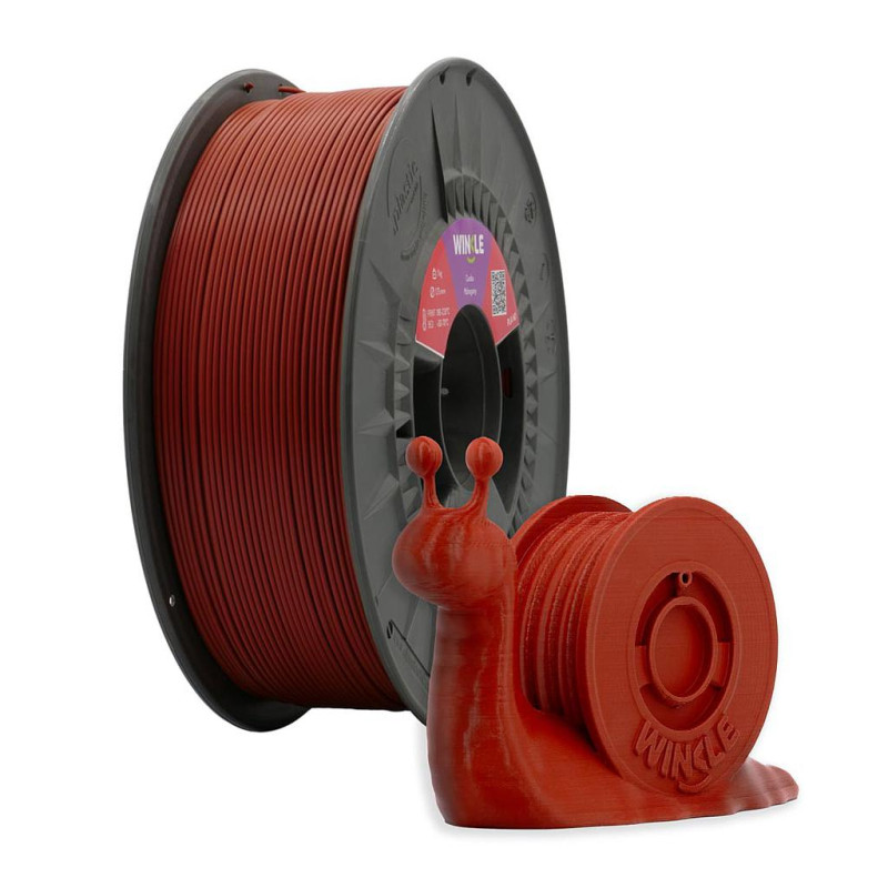 Filamento PLA com uma finura de 1,75mm e garantia de 100% sem bolhas na cor mogno (castanho avermelhado).