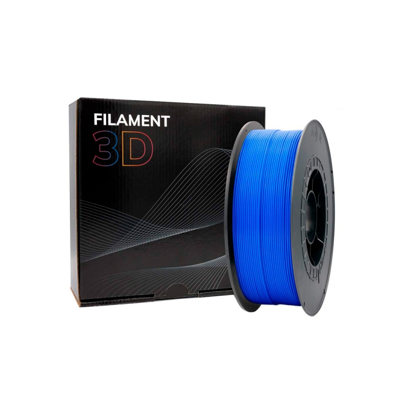 Filamento PLA com uma finura de 1,75mm na cor azul.