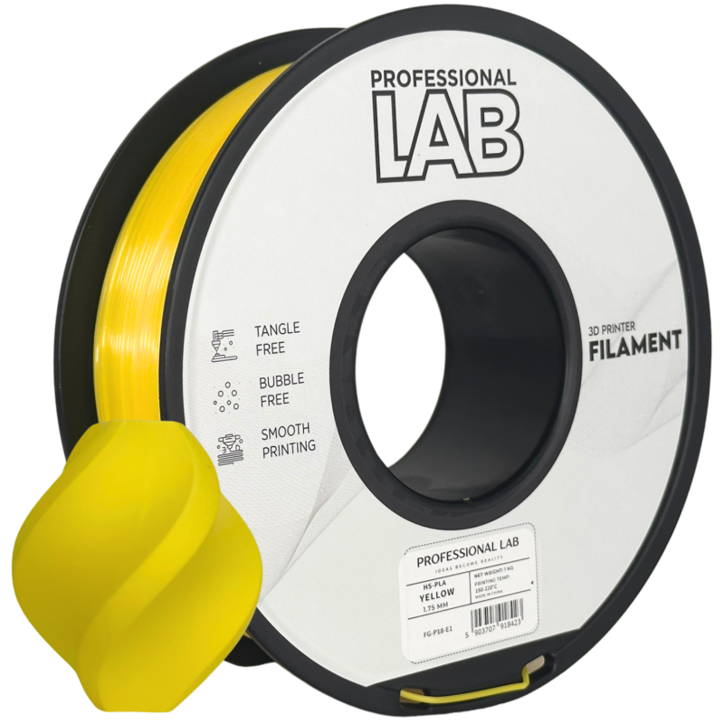 Filamento PLA com uma finura de 1,75mm e garantia de 100% sem bolhas na cor amarelo.